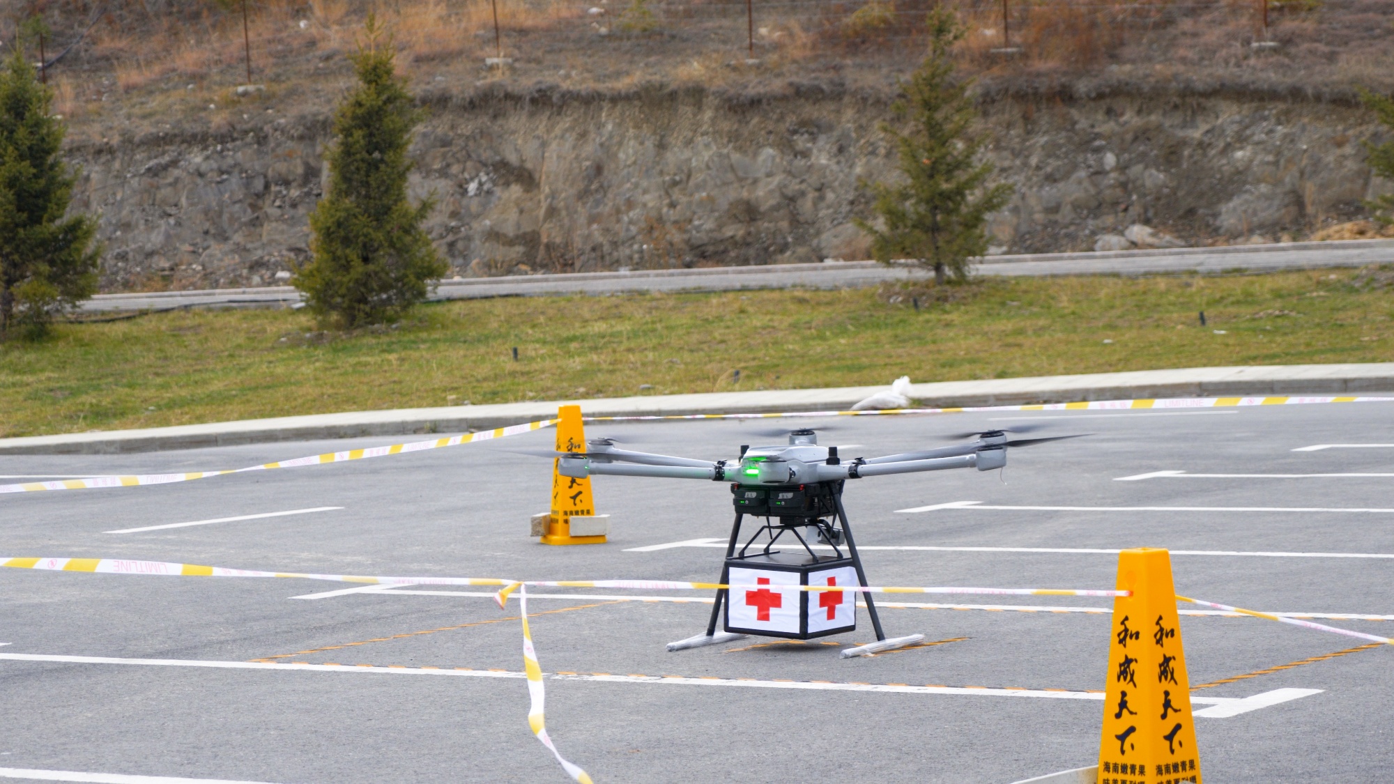 本次试飞运用云龙II-P无人机,航线选定为阿勒泰机场至将军山滑雪场,运送货品为药品,直线分钟便顺利完成。